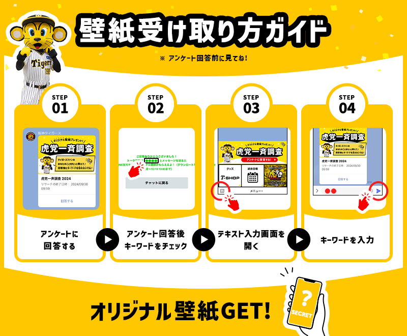 - 【公式LINE】「虎党一斉調査(アンケート)」実施中!「LINE限定 選手お守り壁紙」プレゼント!!