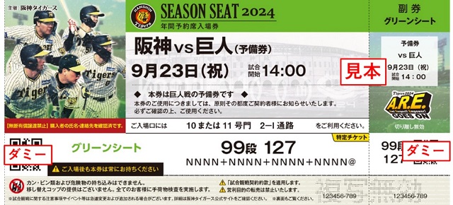 | 9月23日(月・祝) | 巨人戦 | 14:00 | 阪神VS巨人(予備券) 9月23日(祝)14:00 | 8月30日(金)中止分 |
