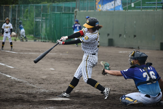 6回裏には、代打田口の左二塁打、安藤の中適時打で1点を追加、更に田中、三浦、髙橋愛の安打などで、2点を加える。その後も一死満塁のチャンスをつくり、最後は前田葵の走者一掃適時二塁打で7点差をつけコールド勝ちとした。阪神TWは、前回敗戦した淡路BOに雪辱を果たし、通算成績8勝1敗でエキスパートリーグ首位をキープした。