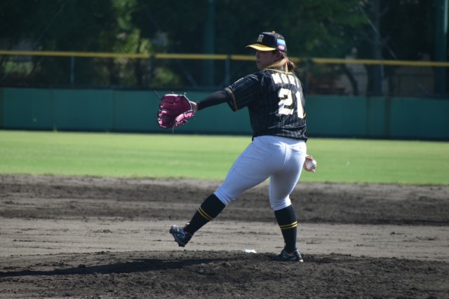 森若菜選手(リーグ後半戦で初登板し、1回を無失点)
