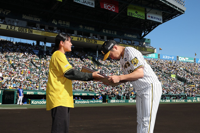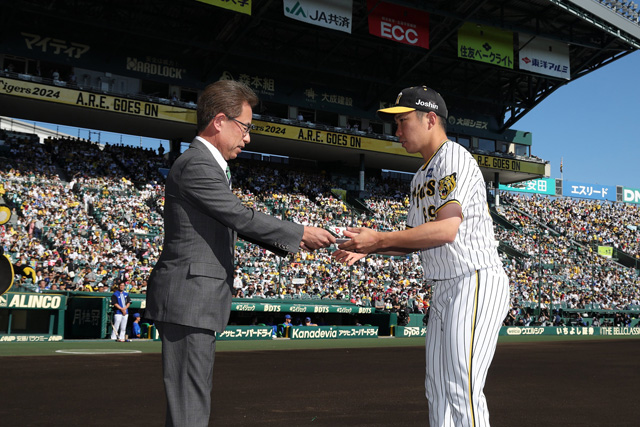 球団選定9・10月度月間最優秀選手に石井大智選手が選ばれ、13日(日)、阪神甲子園球場での「2024 JERA クライマックスシリーズ セ ファーストステージ」対横浜DeNAベイスターズ戦の試合前に表彰式を行いました。