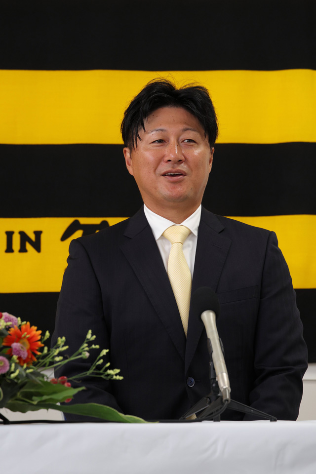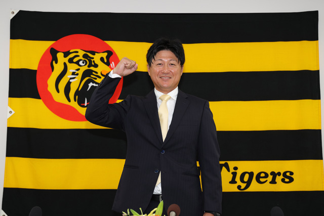21日(月)、来季のファーム野手コーチに俊介(藤川俊介)氏の就任が決定し、西宮市内にて会見を行いました。