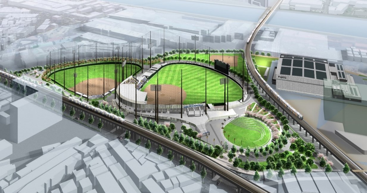 2025年3月より、阪神タイガースのファーム施設(現・西宮市鳴尾浜)を尼崎市・小田南公園へ移転し、「ゼロカーボンベースボールパーク」として開業します。同施設にはファーム公式戦を開催する「日鉄鋼板 SGLスタジアム 尼崎」、タイガース練習場、室内練習場、虎風荘を新設するほか、選手たちが試合や練習に励む姿を身近に感じながら野球を楽しめる「小田南公園野球場」や、くつろげる広場、散歩やランニングができる周遊コースも整備します。更に、太陽光発電・蓄電池の導入や廃棄物発電の活用、省エネ徹底による「脱炭素化」をはじめ、ペットボトル・プラスチックカップの回収・リサイクルや雨水・井水の活用といった環境に優しい取組みを行うなど、脱炭素社会や循環型社会に資するここにしかない魅力ある公園が誕生します。