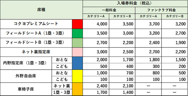 - ※「練習試合」等のファーム公式戦以外の入場券料金は未定です。決定次第、当サイト等で発表します。