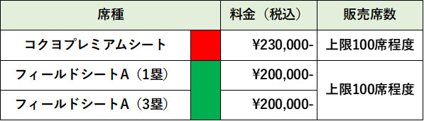 | コクヨプレミアムシート | フィールドシートA(1塁・3塁) |