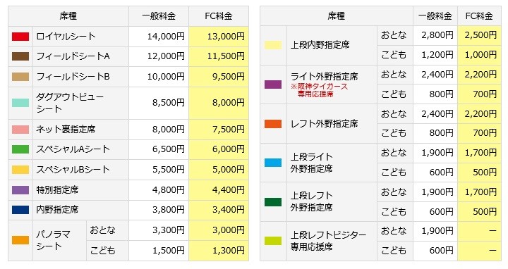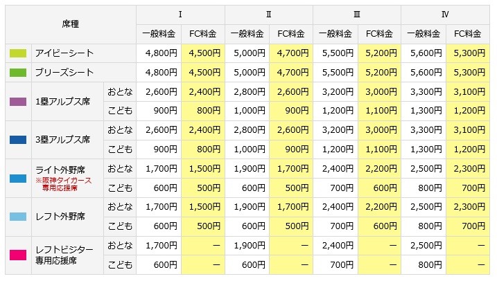 - 阪神タイガース主催レギュラーシーズン公式戦 入場券料金・区分の変更について