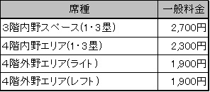 ※一般・車椅子席料金の詳細につきましては下記をご参照ください。 - ②「ダグアウトビューシート」を新設