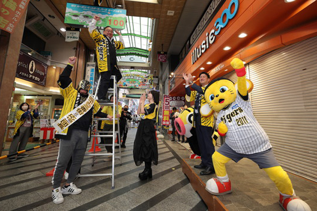 本日、尼崎中央三丁目商店街で、「ゼロカーボンベースボールパーク開業100日前セレモニー」が開催され、阪神タイガースからキー太が参加しました。