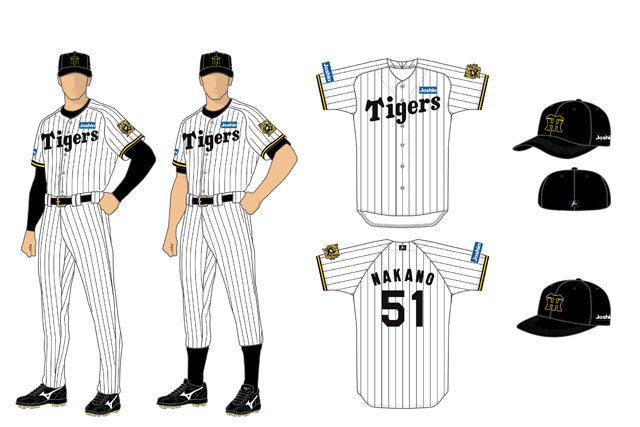 胸番号は取り、キャップはブラックをベースに変更することでシンプルに。また、チームカラーであるイエローは要所で残しつつ、球団伝統の「縦縞」の仕様を変更(太さ2mm・幅25mmから、太さ2.5mm・幅23mm)することで、よりピンストライプを際立たせ、クラシカルな印象を持つユニフォームデザインにいたしました。