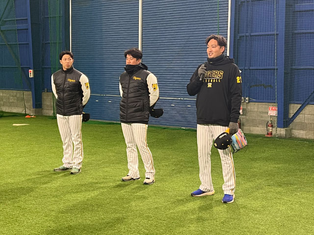 20日(金)、来年1月1日付でベースボールアンバサダーに就任する秋山拓巳氏とタイガースアカデミーコーチに就任する陽川尚将氏、そして育成ドラフト1巡目でインディゴソックスから入団した工藤泰成選手が、今年で2度目となる阪神タイガースと徳島インディゴソックスのコラボイベント「阪神タイガース×徳島インディゴソックス Xmas野球教室」に参加しました。