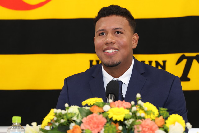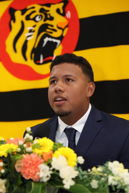 29日(水)、ジーン・アルナエス選手が西宮市内にて入団会見を行いました。