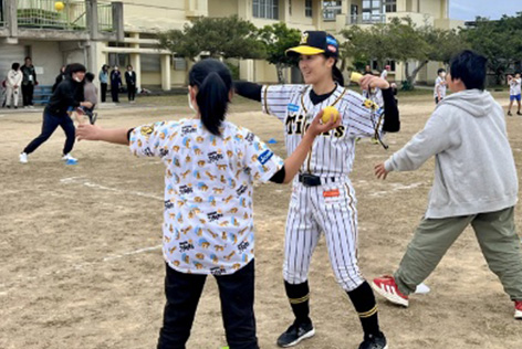 また本年は、キャンプ地である沖縄県うるま市の小学校を訪問したほか、対象学年についても、幅広い学年でゲストティーチャー活動を実施するなど、野球振興活動の範囲を拡大しています。