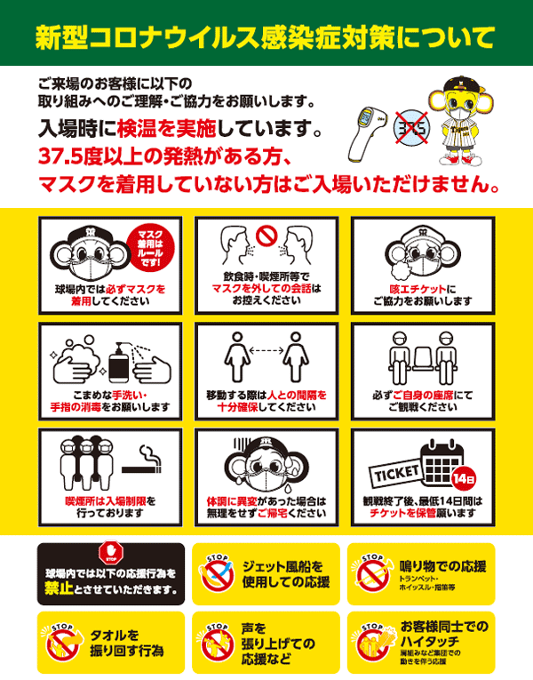- ■球場内ではこまめな手洗いや手指消毒、咳エチケットの遵守をお願いします。