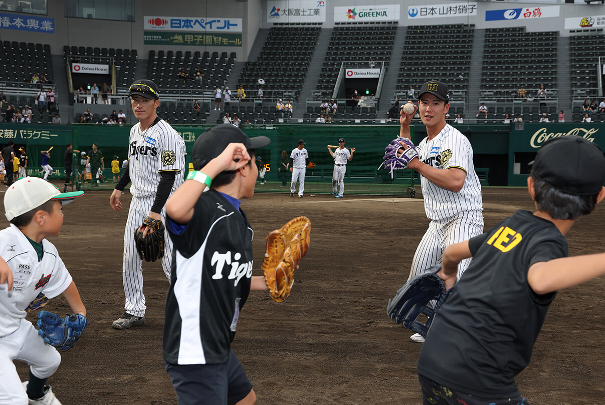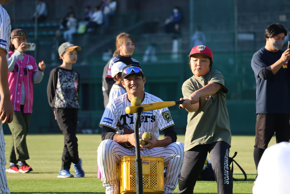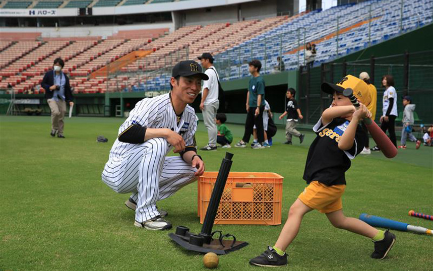 阪神タイガースは甲子園球場やSGLスタジアムを中心とした各球場で、阪神タイガース現役選手や、OB、アンバサダー、タイガースアカデミーコーチによる野球教室を行っております。参加費は基本無料。現在は小学生~中学生を対象とし、初めて野球に触れるお子様向けの教室から技術指導の教室など、不定期に開催されます。